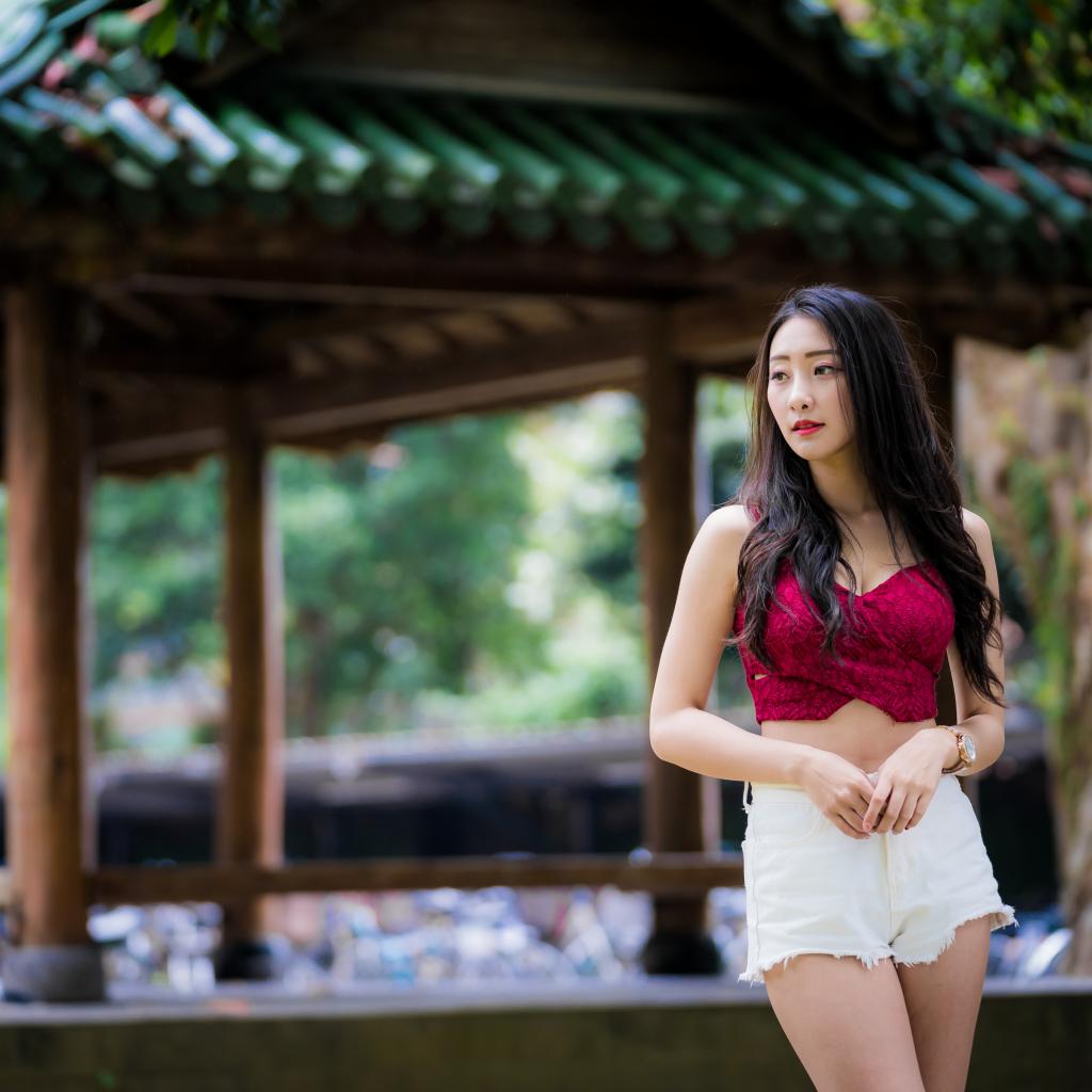 Wallpaper Beautiful girl in white shorts in a park