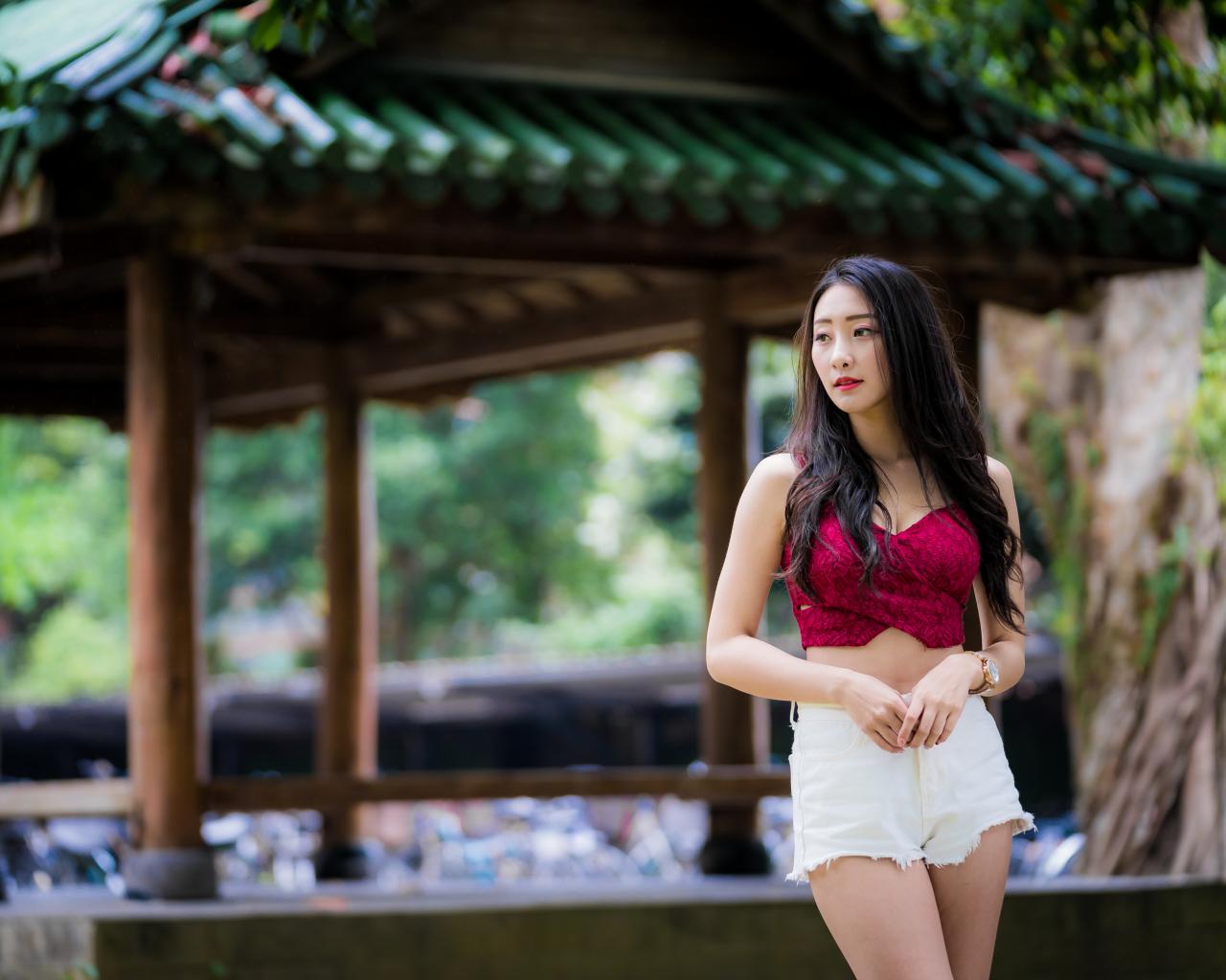Wallpaper Beautiful girl in white shorts in a park