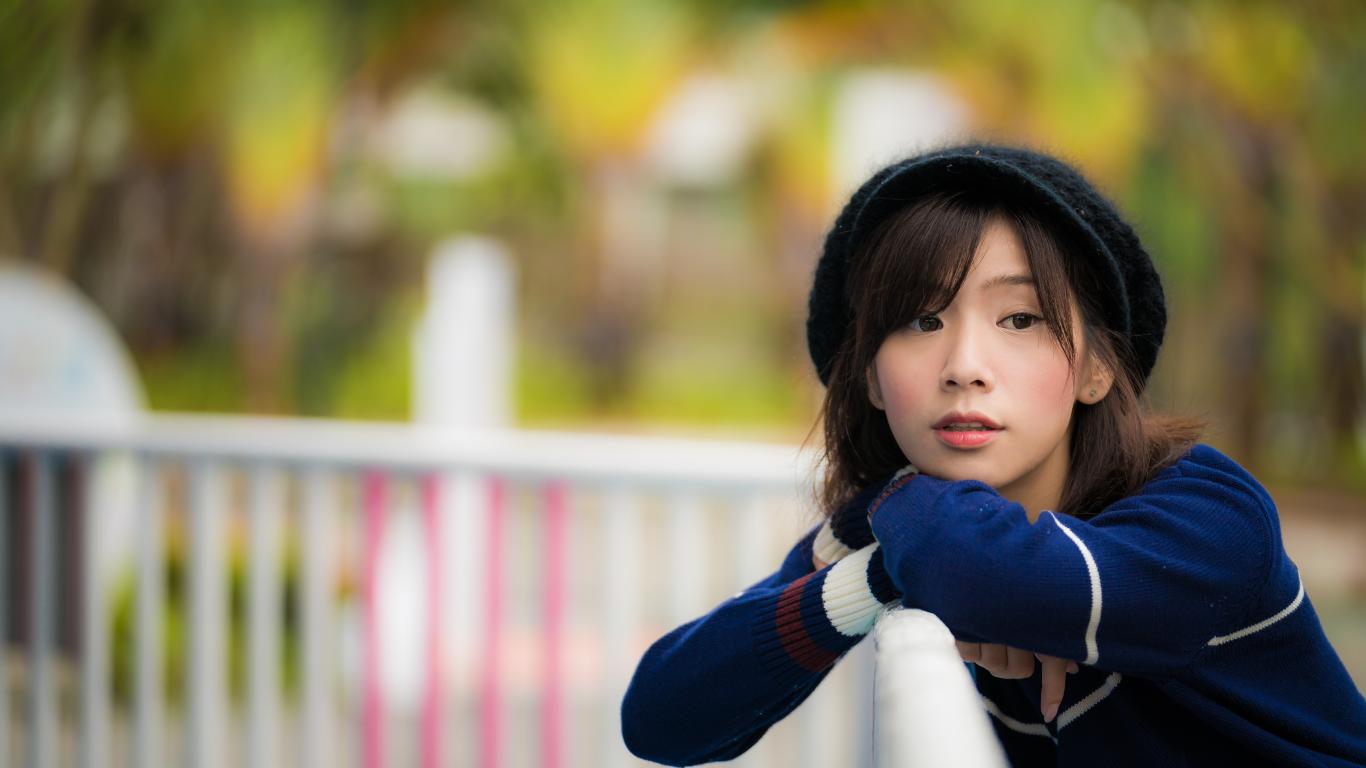 Wallpaper Young Asian in a black beret in the park