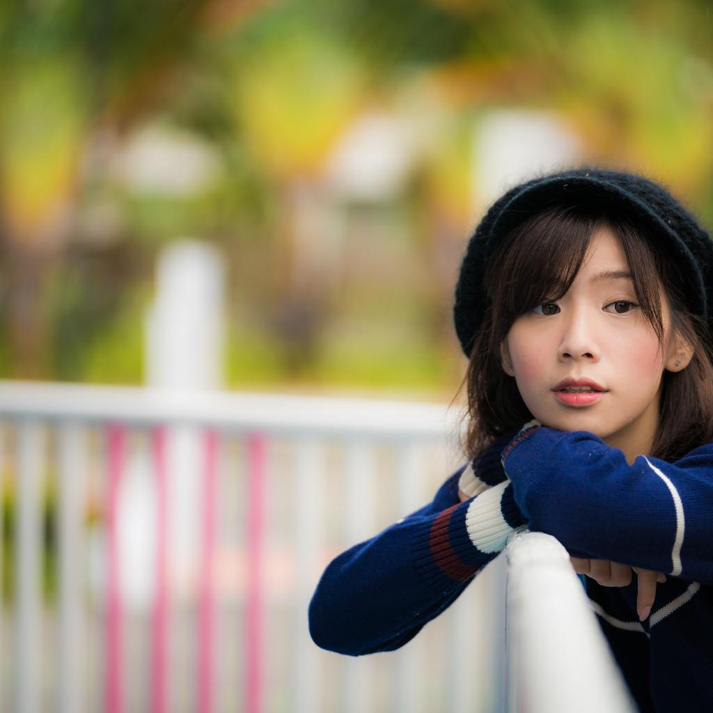 Wallpaper Young Asian in a black beret in the park