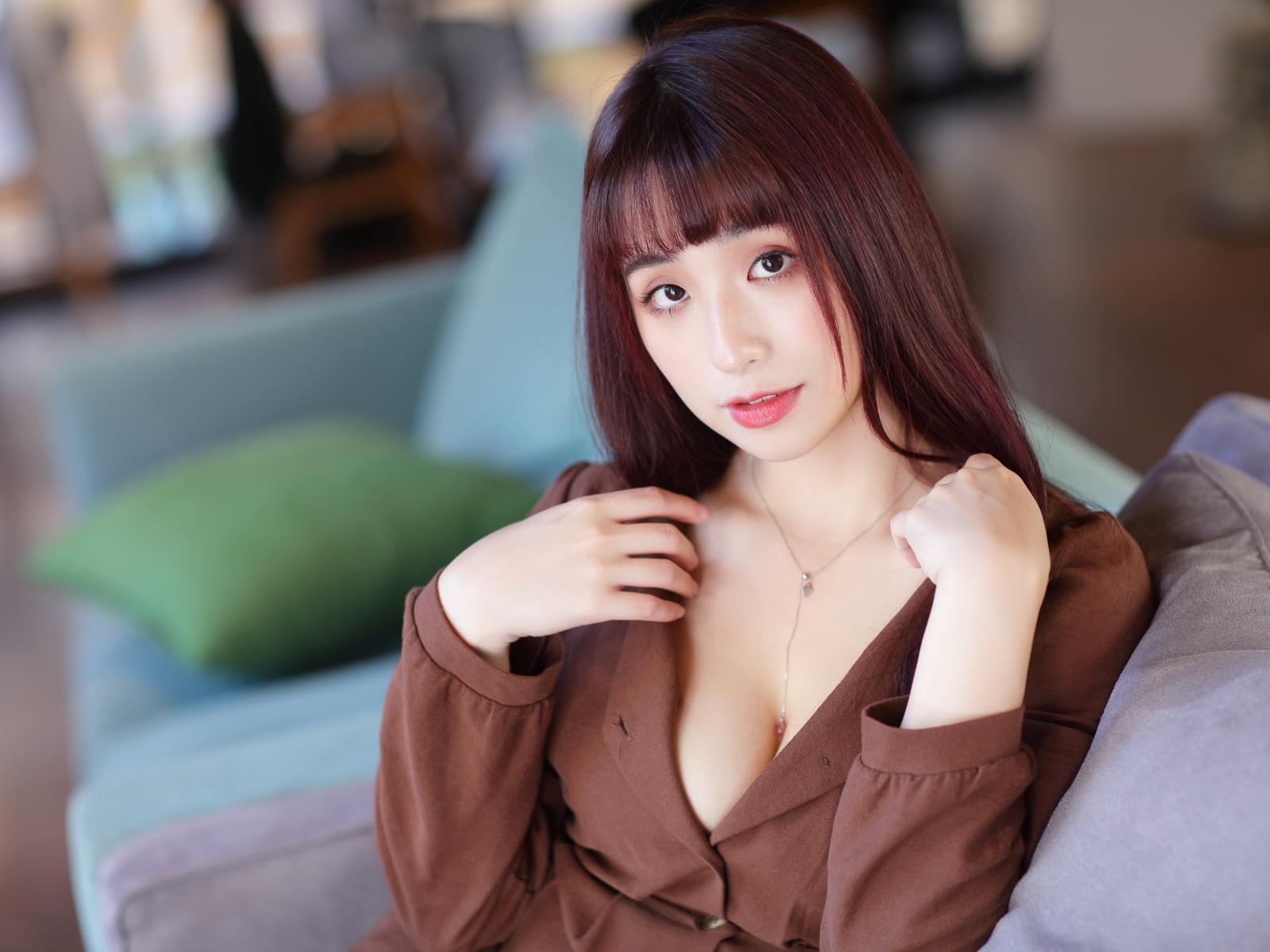 » Wallpaper Young asian woman sitting on sofa