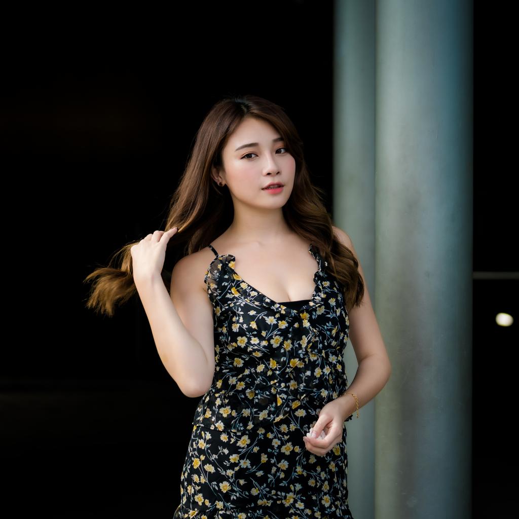 » Wallpaper Asian girl in dress touches hair