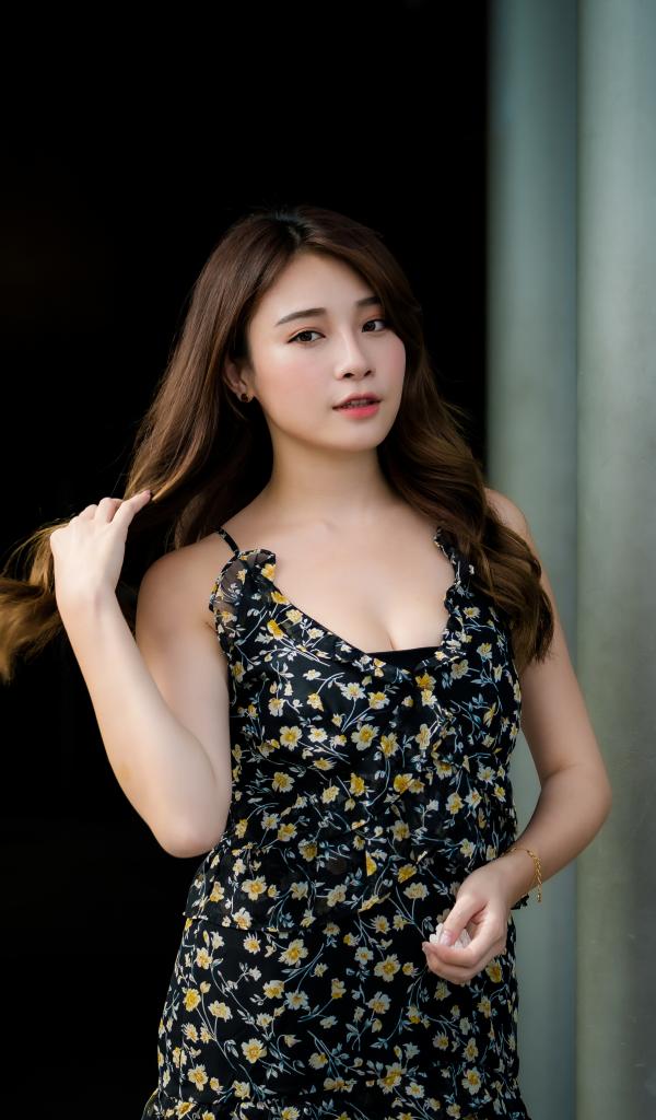 Wallpaper Asian girl in black dress