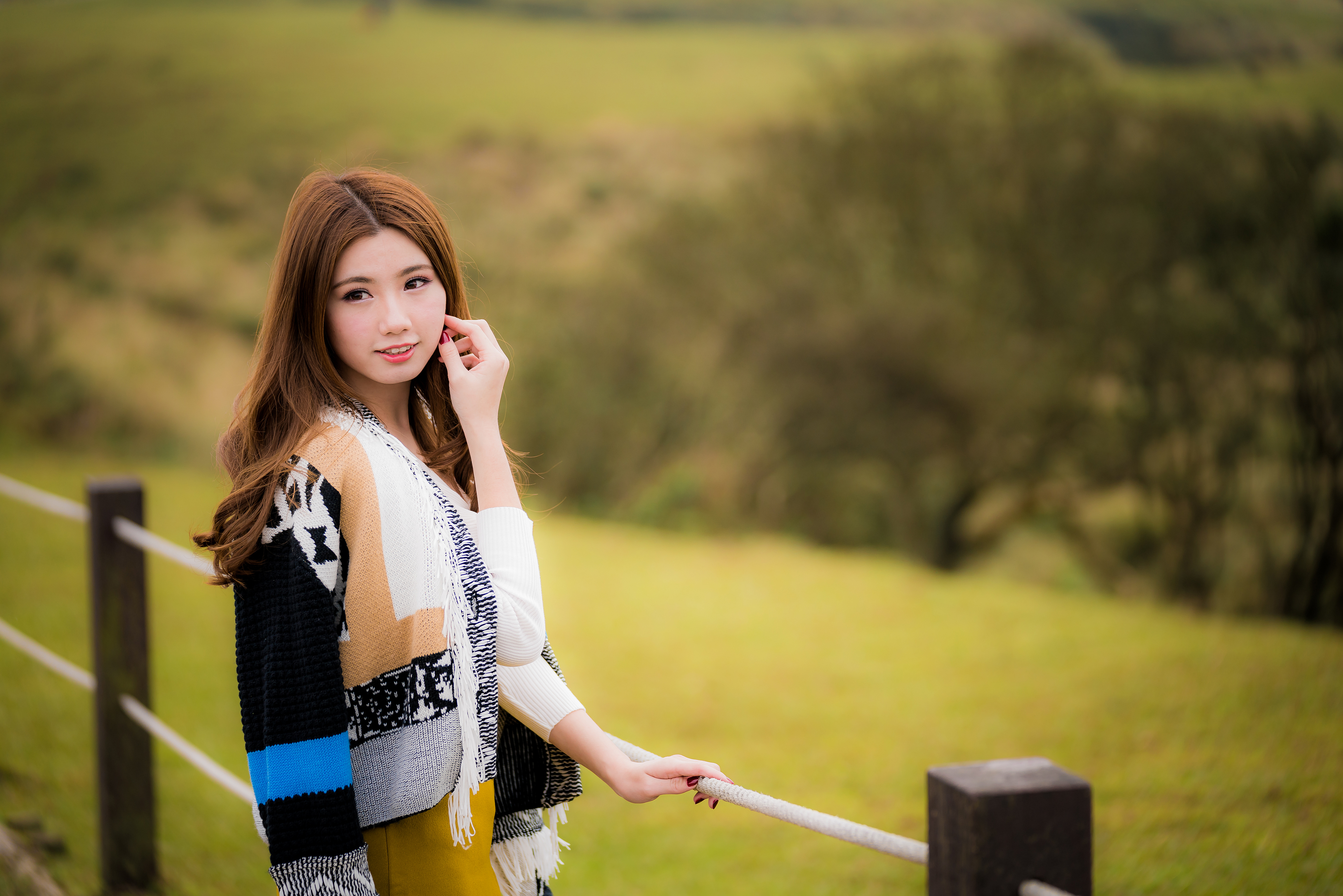 Wallpaper Asian girl in a beautiful multi-colored sweater