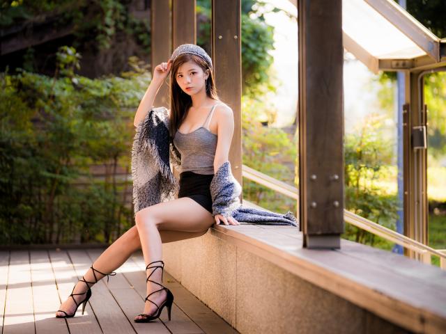 » Wallpaper Leggy Asian sitting on the window