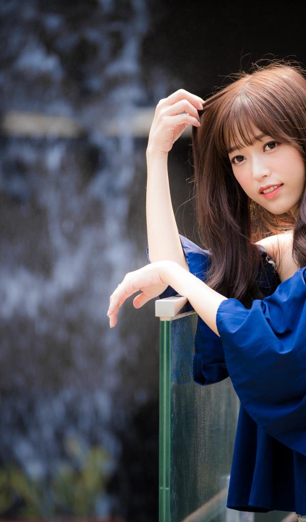 Wallpaper Asian girl in a blue beautiful dress