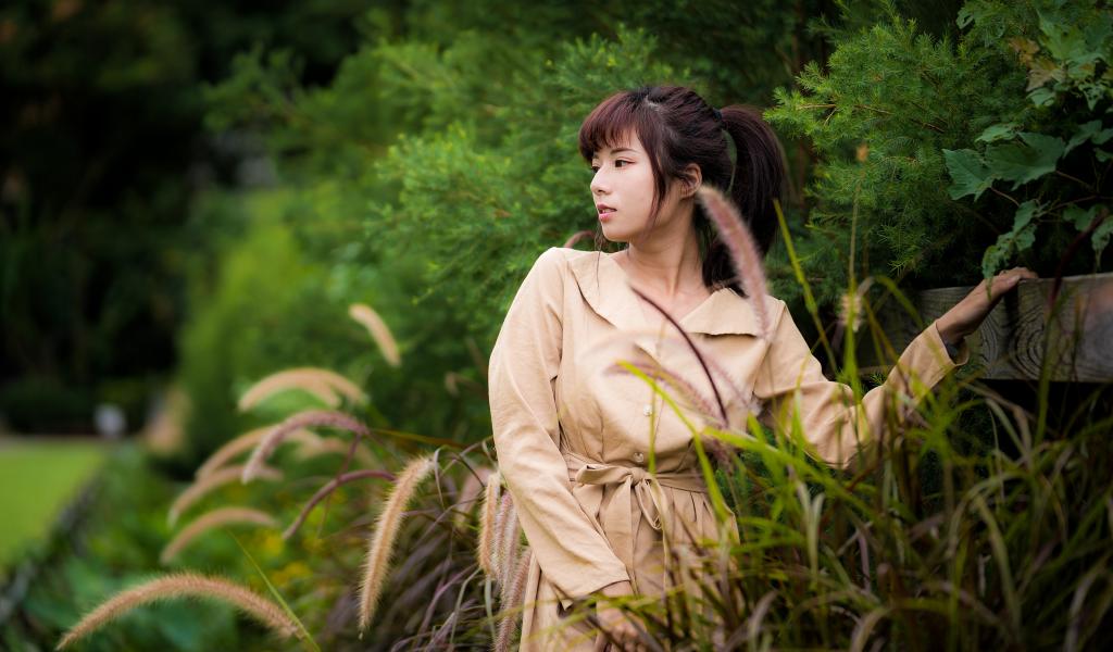 » Wallpaper Cute Asian in a coat in the park