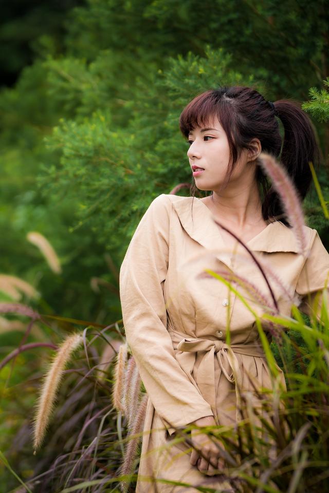 » Wallpaper Cute Asian in a coat in the park