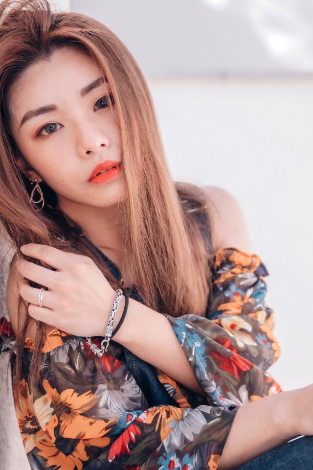 Wallpaper Asian girl sitting on the floor against the wall