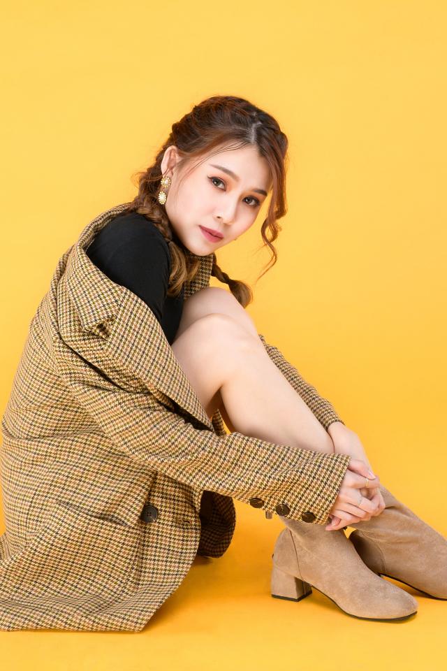 Wallpaper Asian girl in a coat on a yellow background