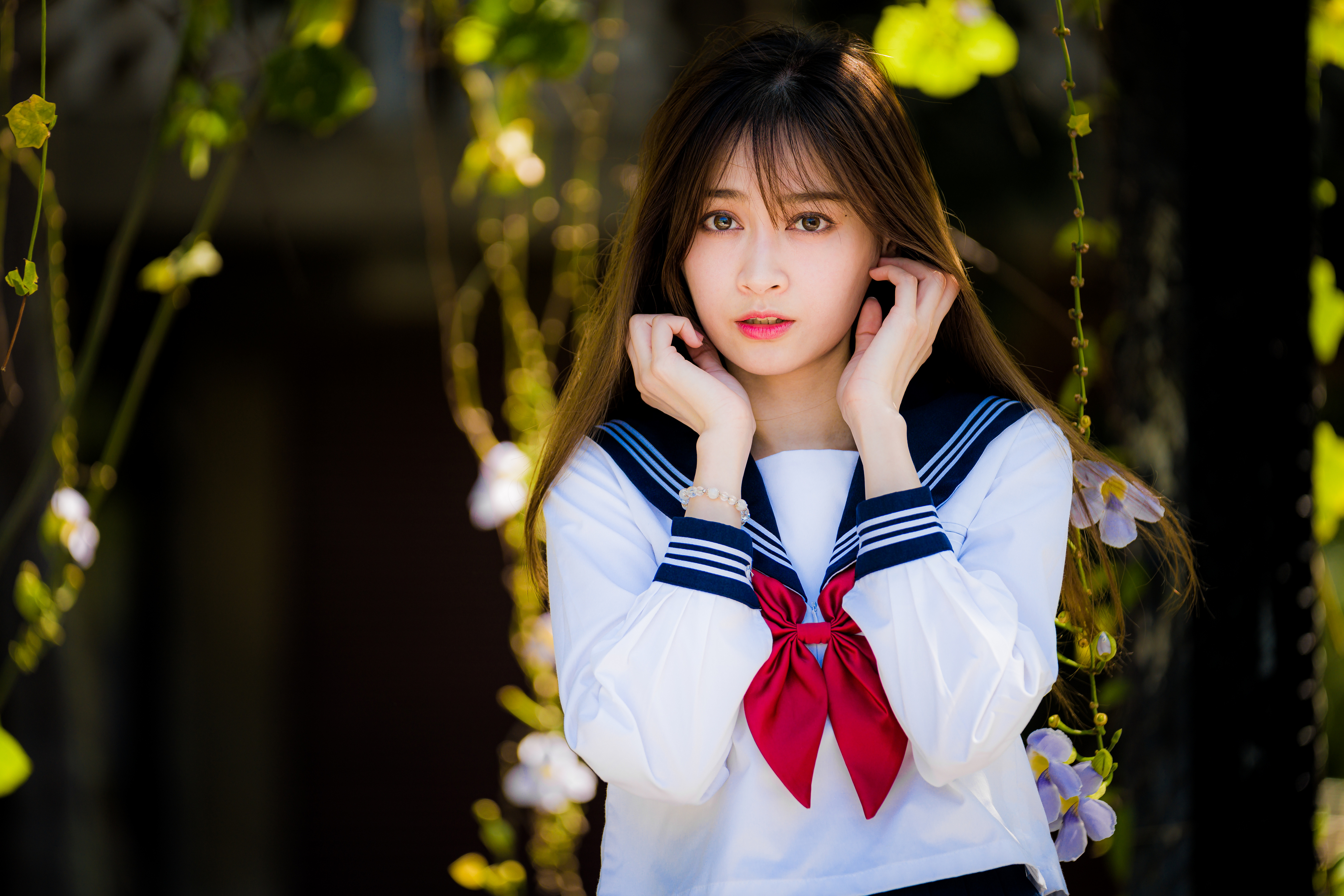 Wallpaper Asian girl in a shirt with a bow