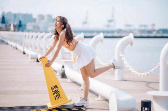 Wallpaper Asian with a short white skirt near the water