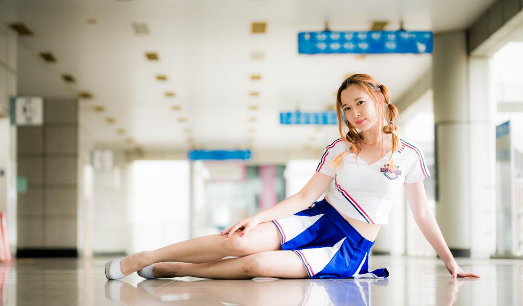 Wallpaper Young athletic asian woman in uniform at the gym