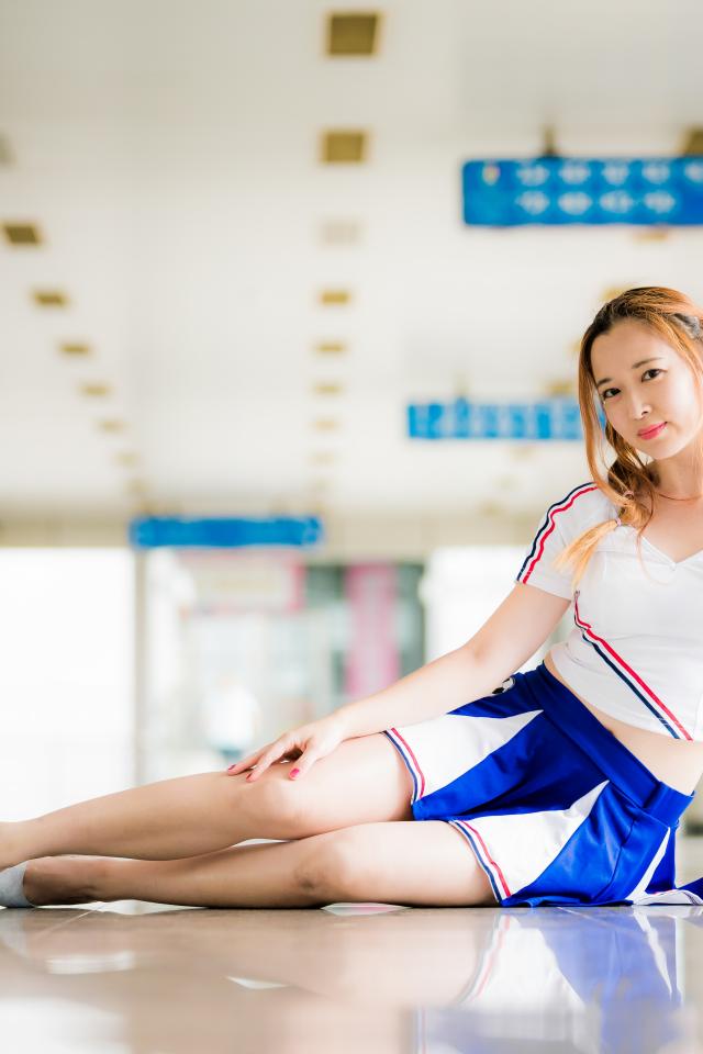 Wallpaper Young athletic asian woman in uniform at the gym