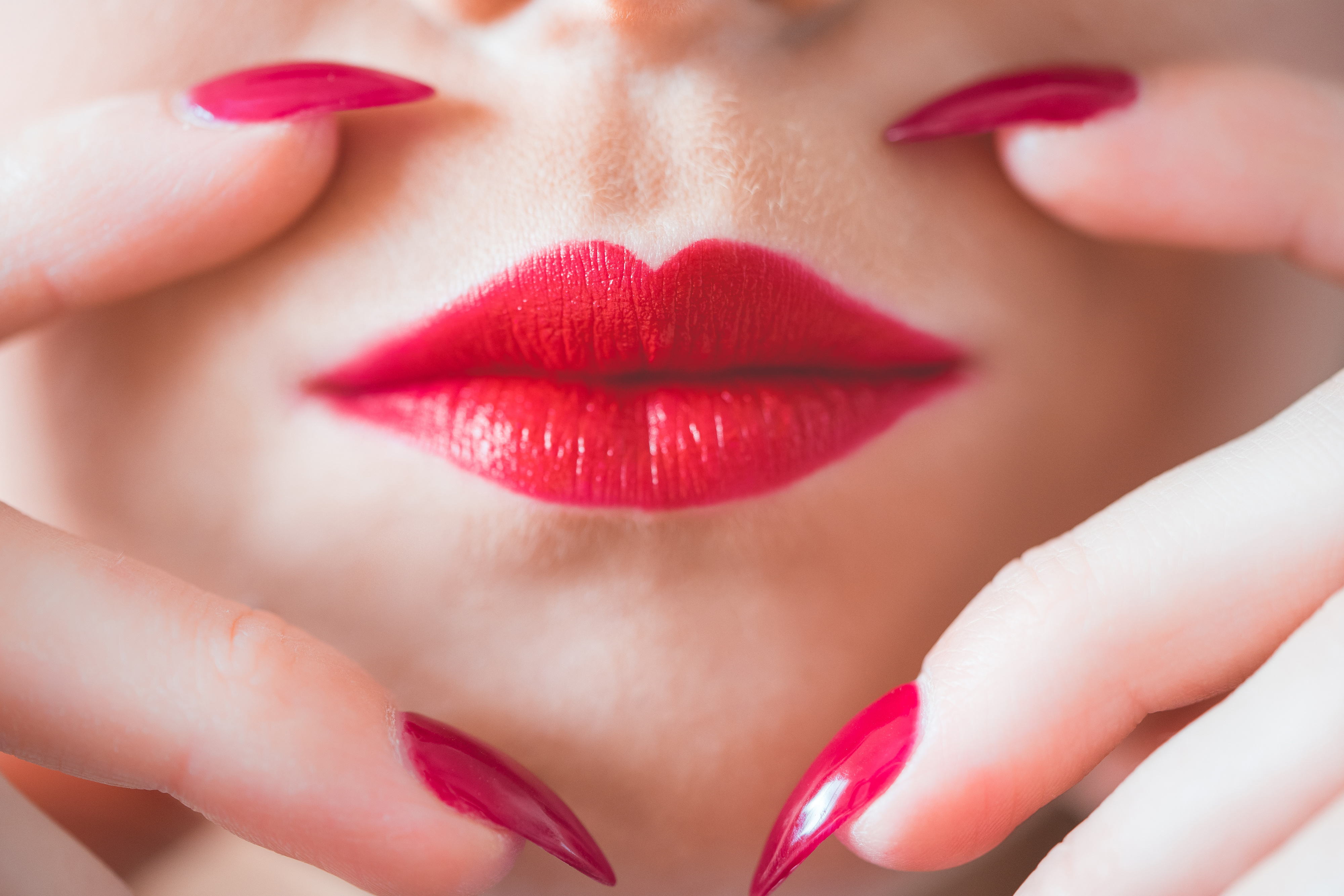 Wallpaper Hands with long red nails at the lips