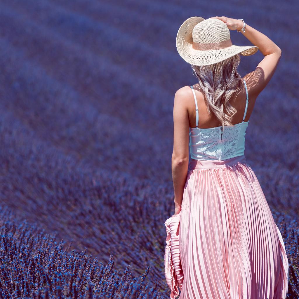 Wallpaper Beautiful girl in a hat on a lavender field