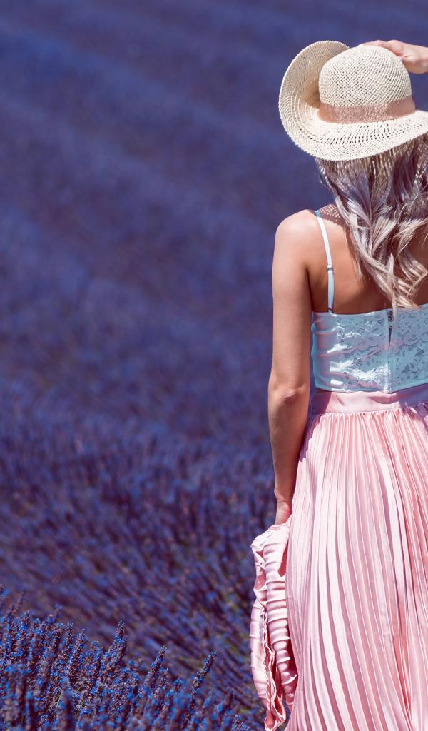 Wallpaper Beautiful girl in a hat on a lavender field