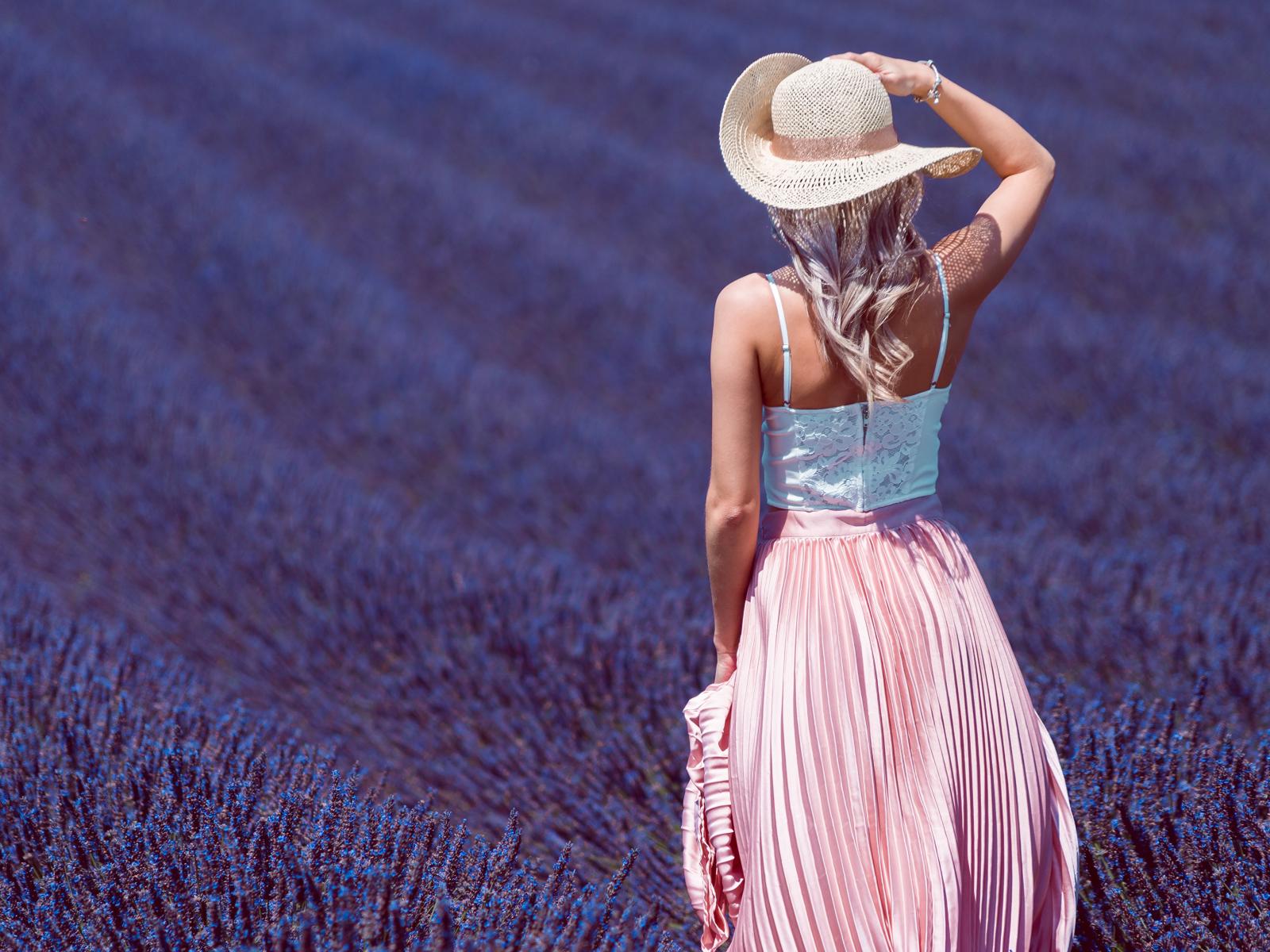 Wallpaper Beautiful girl in a hat on a lavender field