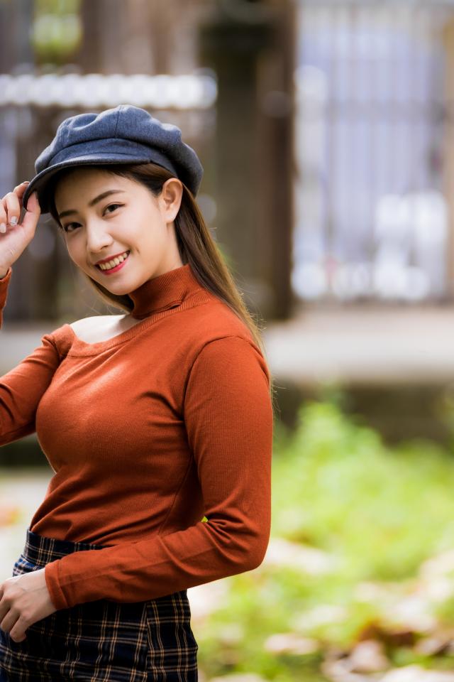 Wallpaper Smiling Asian girl sitting at a table in a cafe