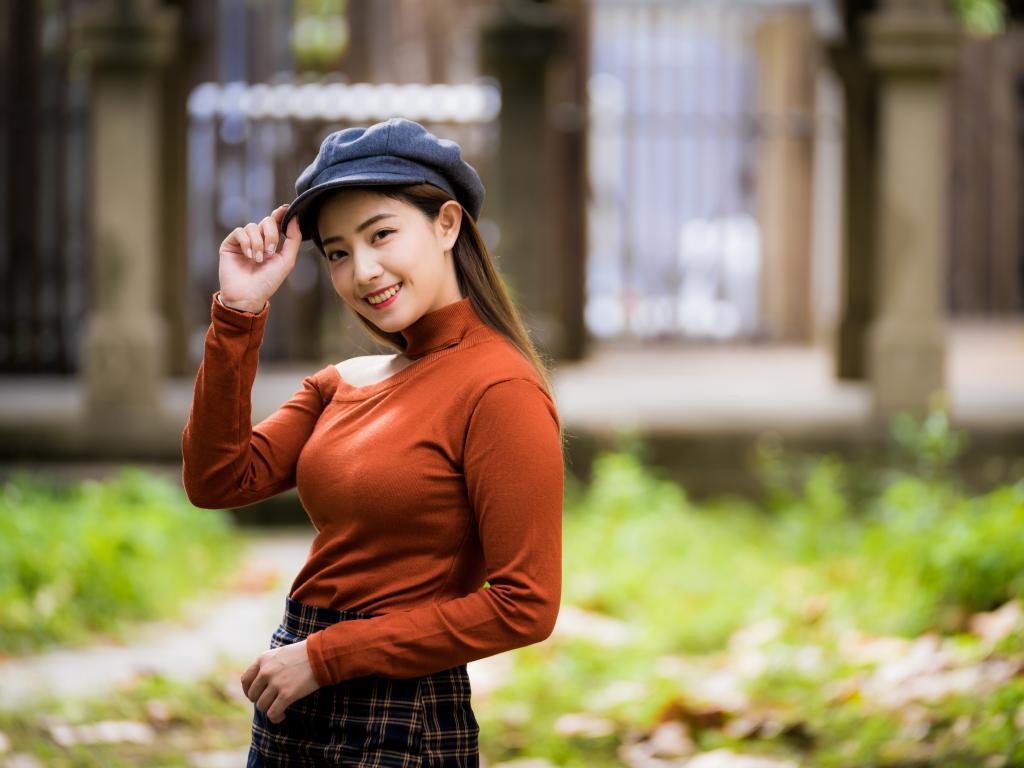 Wallpaper Smiling Asian girl sitting at a table in a cafe
