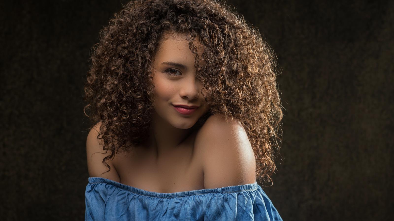 Wallpaper Cute curly girl in a dress