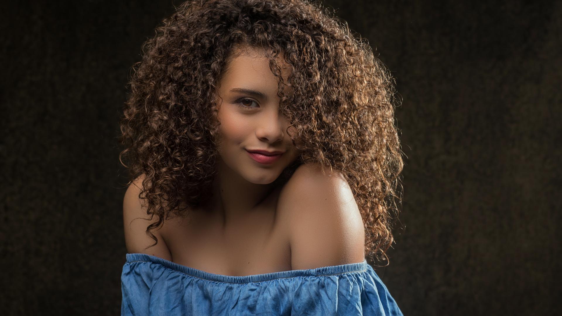 » Wallpaper Cute curly girl in a dress