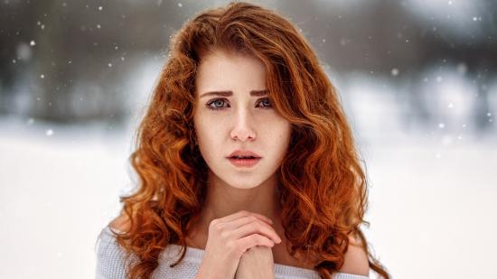 Wallpaper Red-haired girl freezes on the street in winter