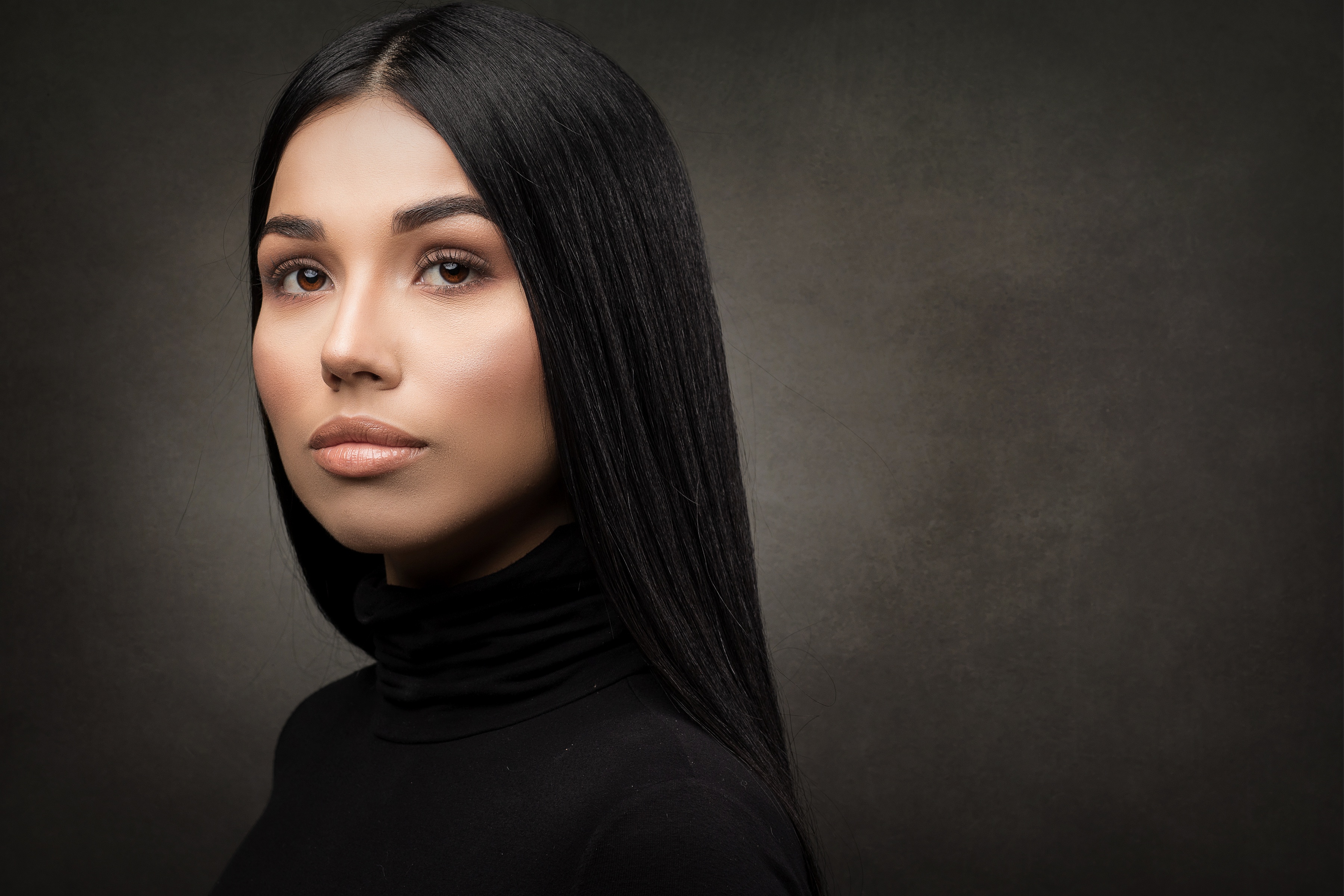 Wallpaper Young brown-haired brown-haired woman on a gray background
