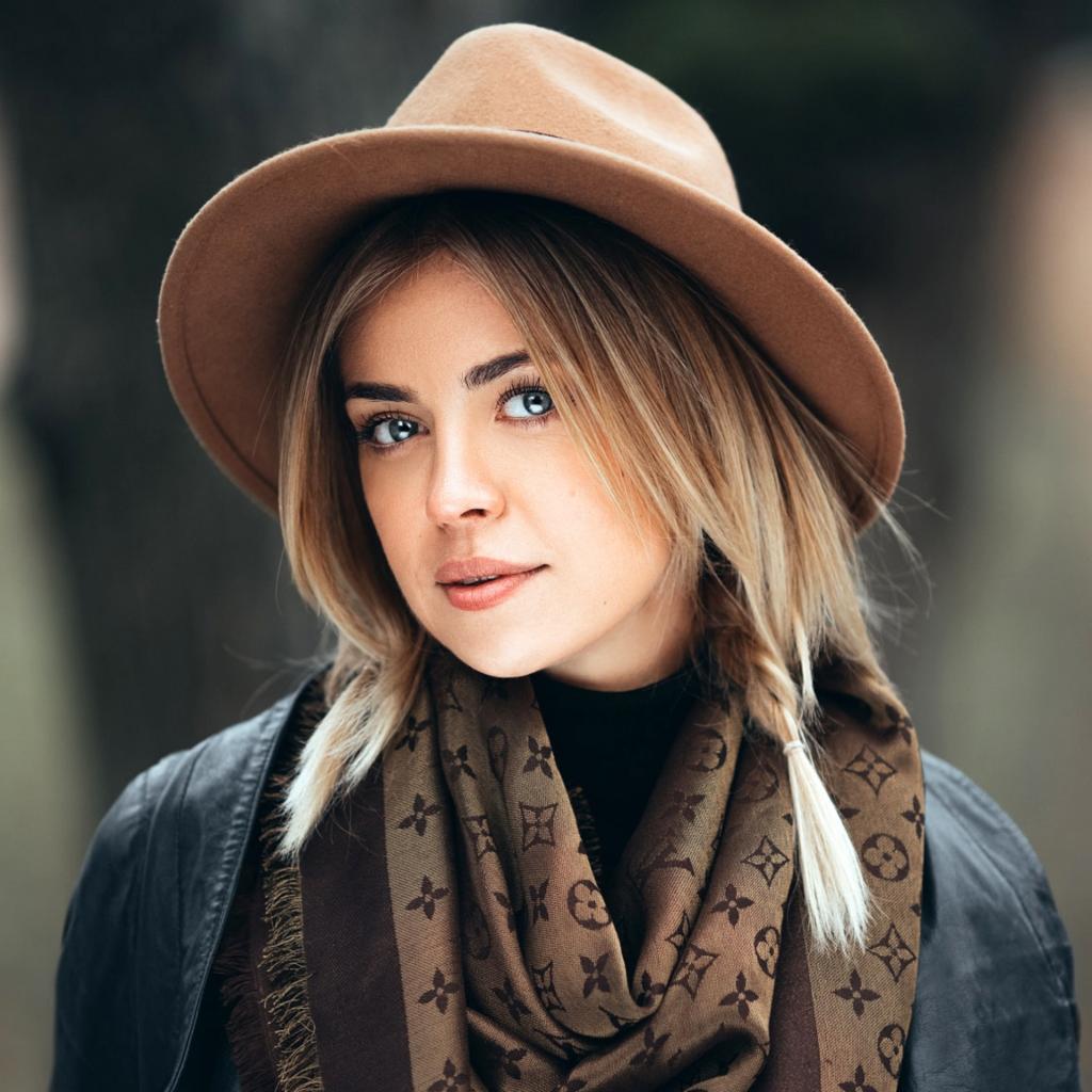 Wallpaper Beautiful blue-eyed girl in a brown hat