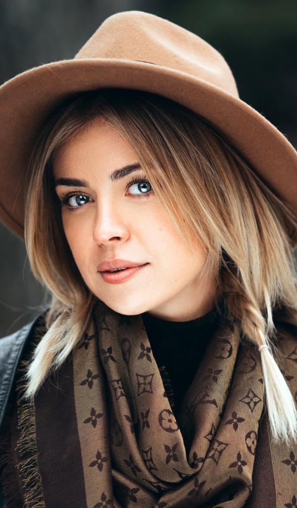 Wallpaper Beautiful blue-eyed girl in a brown hat