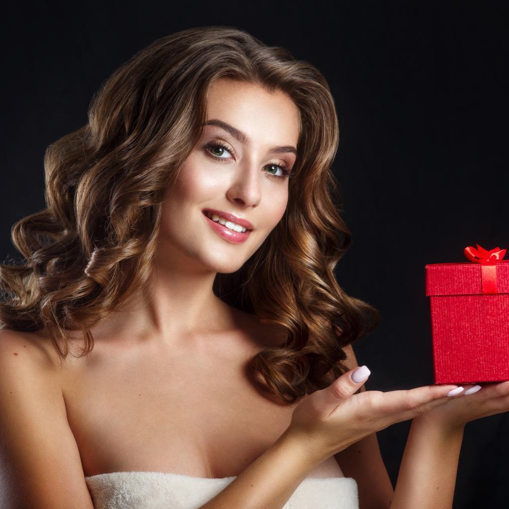 Wallpaper Girl with beautiful hair with a gift on her hand