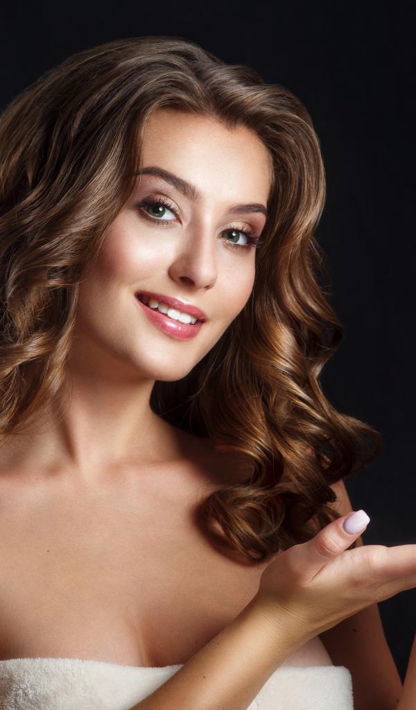 Wallpaper Girl with beautiful hair with a gift on her hand