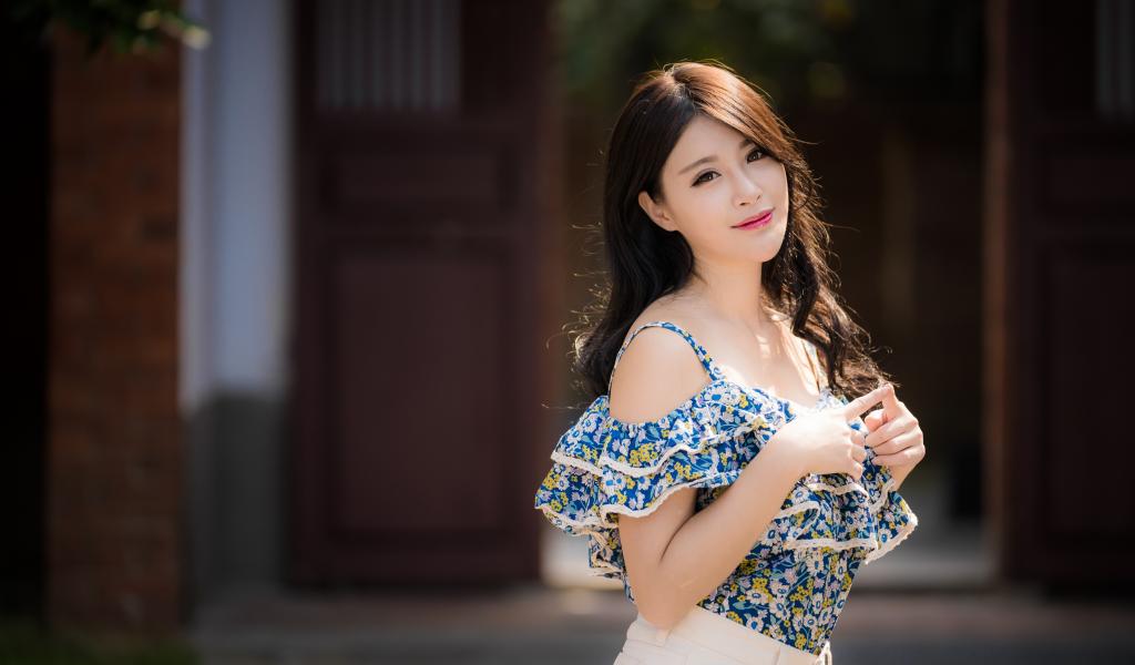 Wallpaper Cute long-haired Asian girl with a beautiful smile