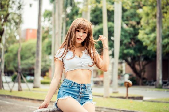 Wallpaper Young Asian in a short top and blue shorts