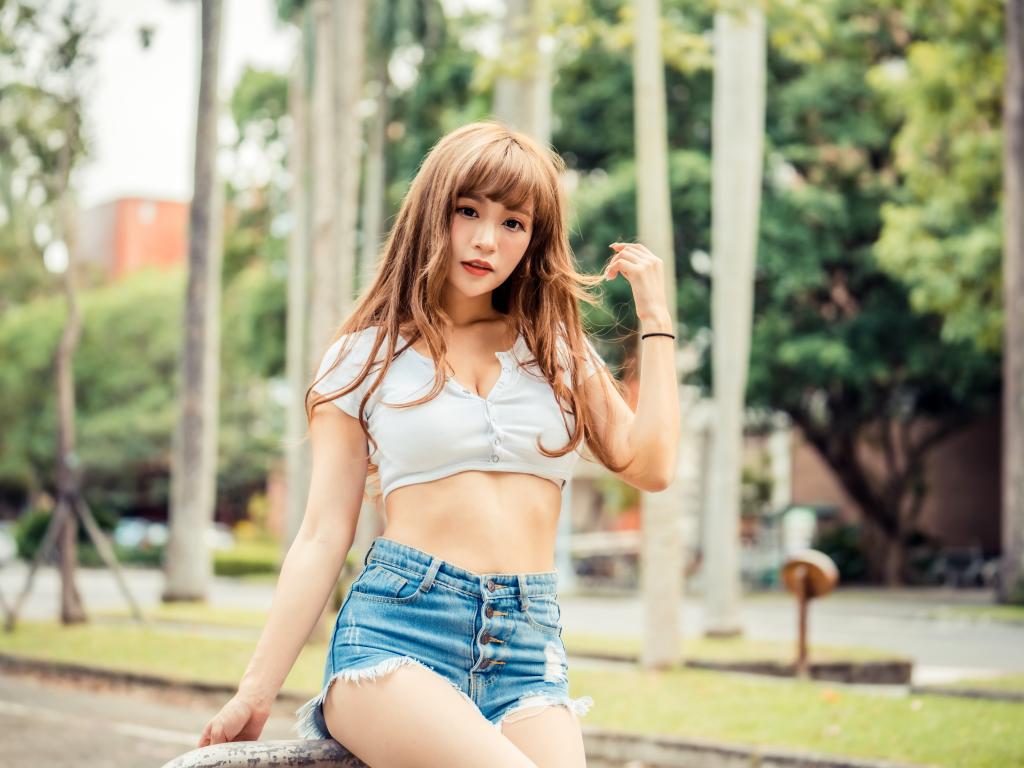 Wallpaper Young Asian in a short top and blue shorts