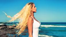 Wallpaper Beautiful girl in a white dress on the ocean in summer