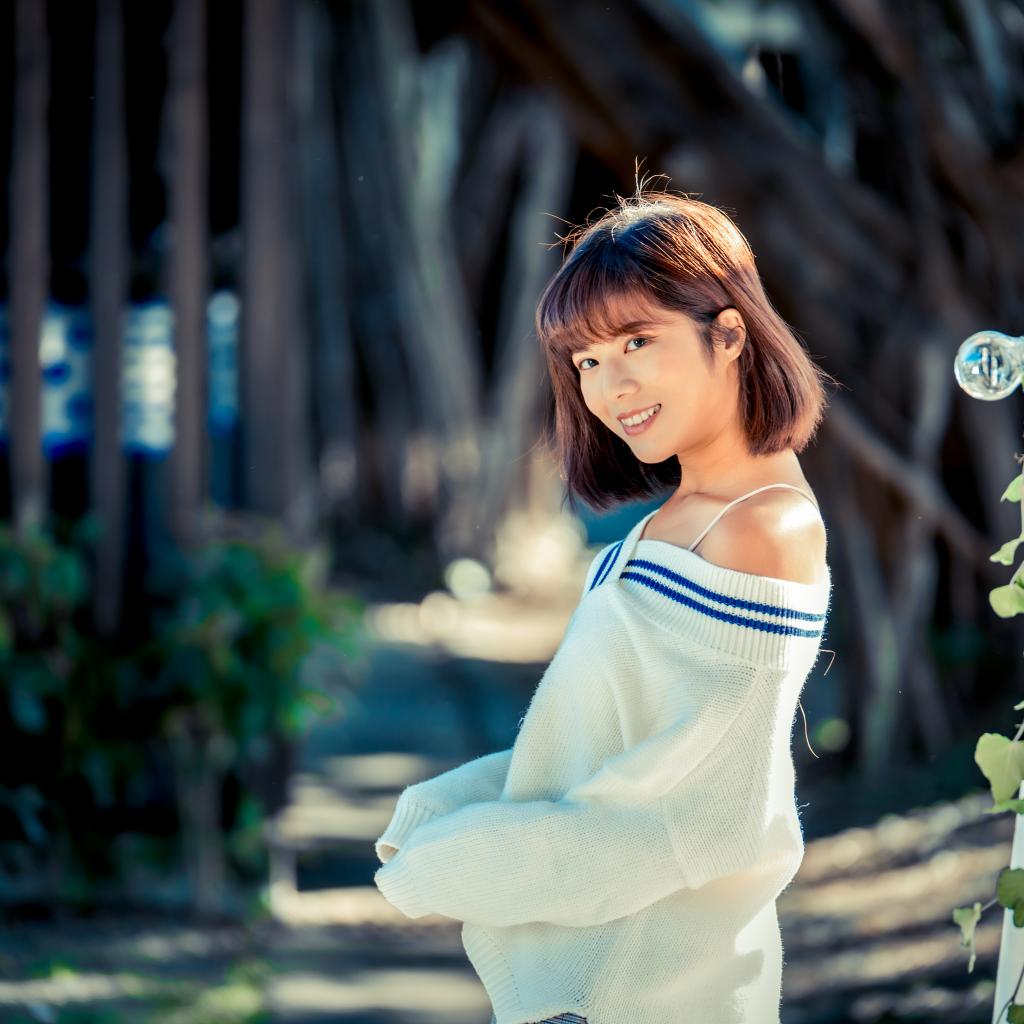Wallpaper Smiling Asian girl in a white sweater