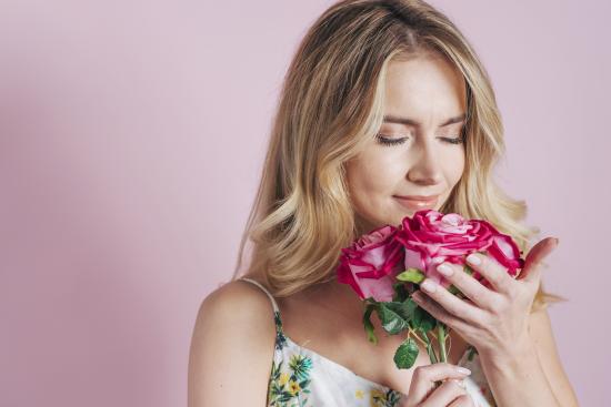 » Wallpaper Girl inhales the scent of roses