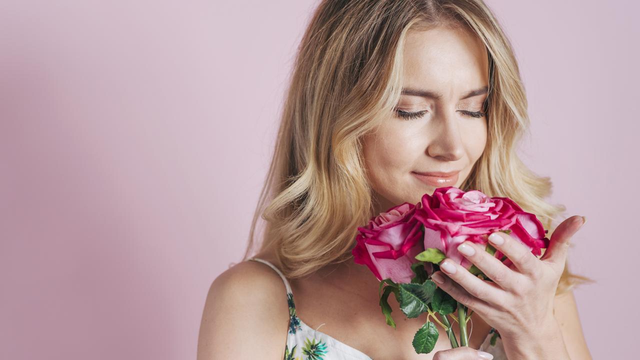 » Wallpaper Girl inhales the scent of roses