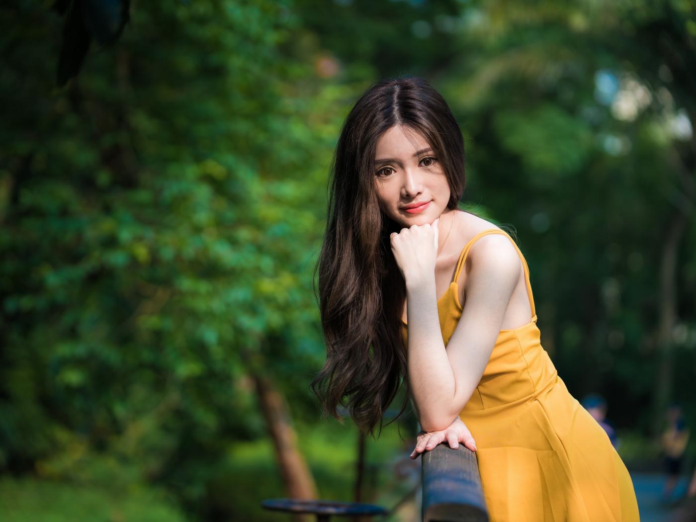 Wallpaper Asian girl with big brown eyes in a yellow dress