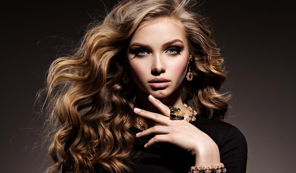 Wallpaper Young girl in a black sweater with expensive jewelry