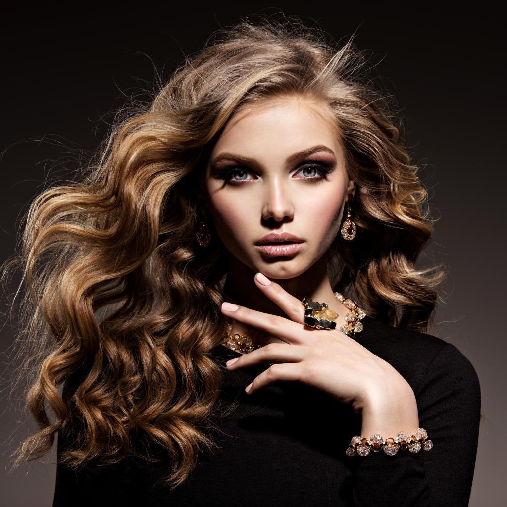 Wallpaper Young girl in a black sweater with expensive jewelry