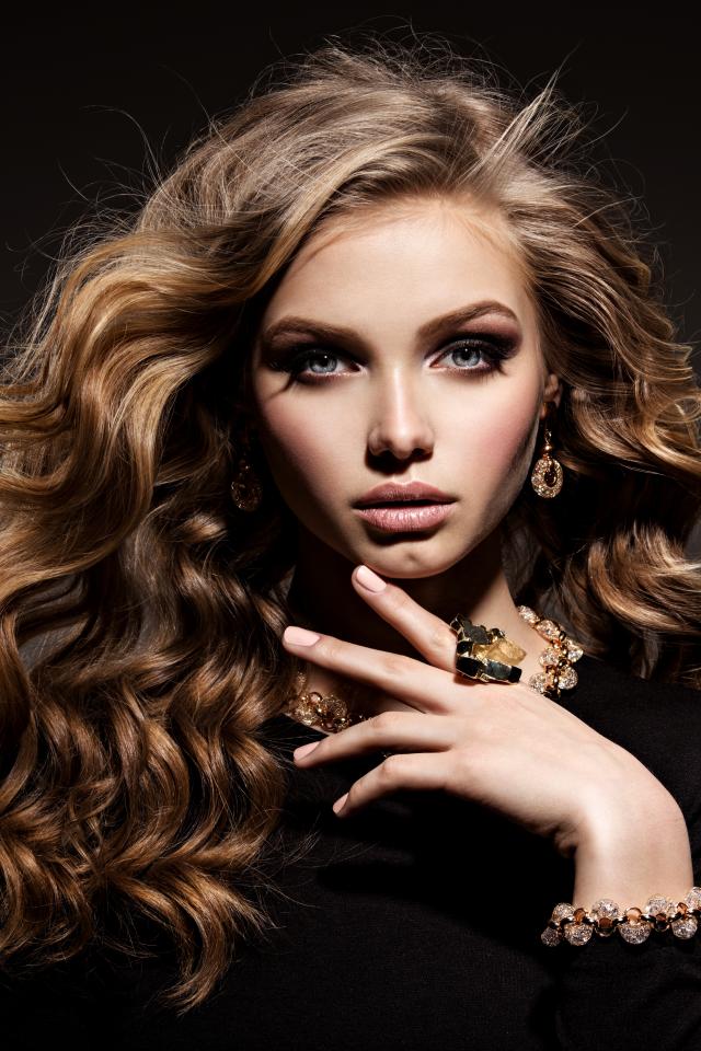 Wallpaper Young girl in a black sweater with expensive jewelry