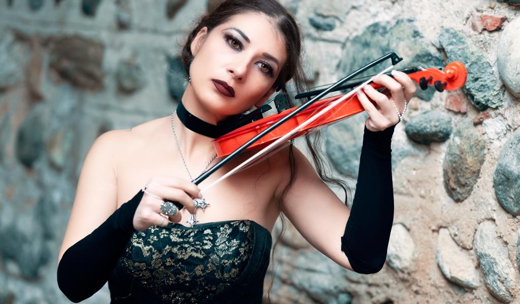 Wallpaper Girl in a black dress with a violin in his hand