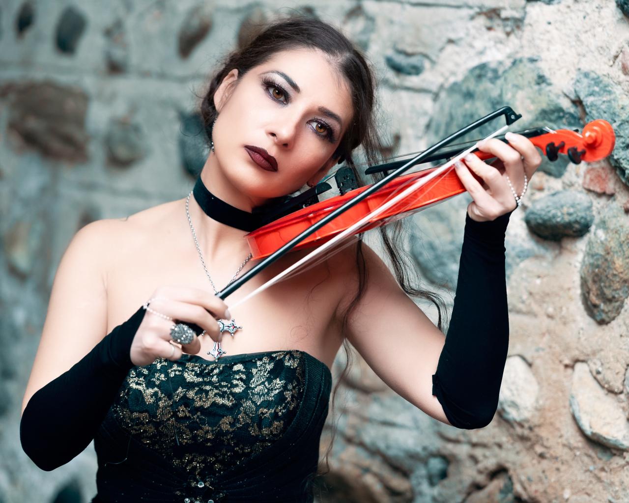 Wallpaper Girl in a black dress with a violin in his hand