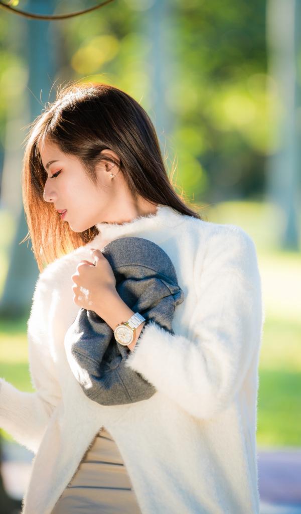 Wallpaper Beautiful Asian in a white sweater in a sunny park