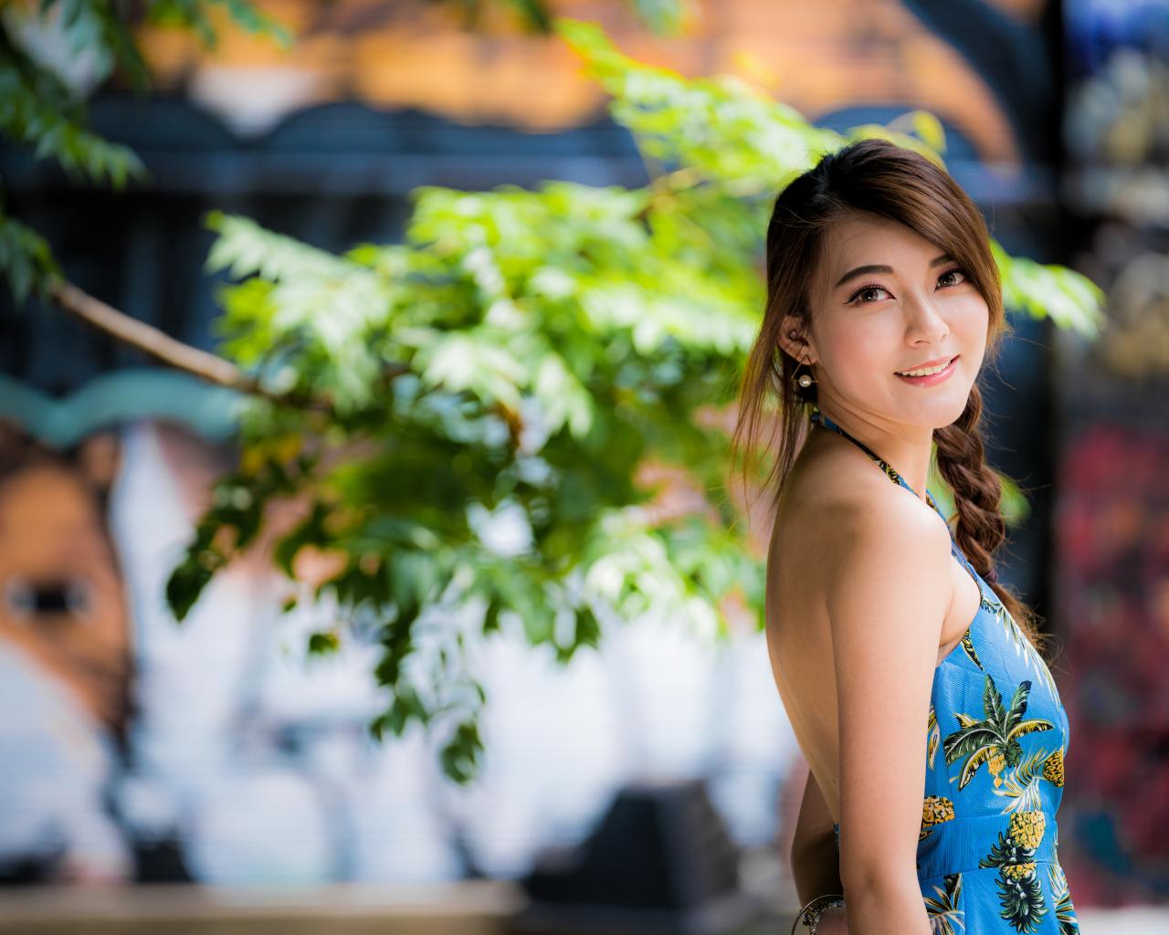 Wallpaper Beautiful girl with a braid on her head in a dress