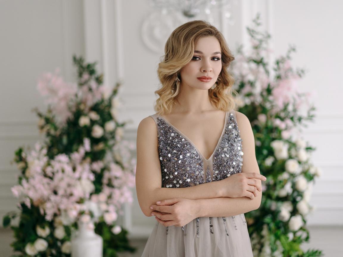 Wallpaper Girl in a beautiful dress on a background of flowers