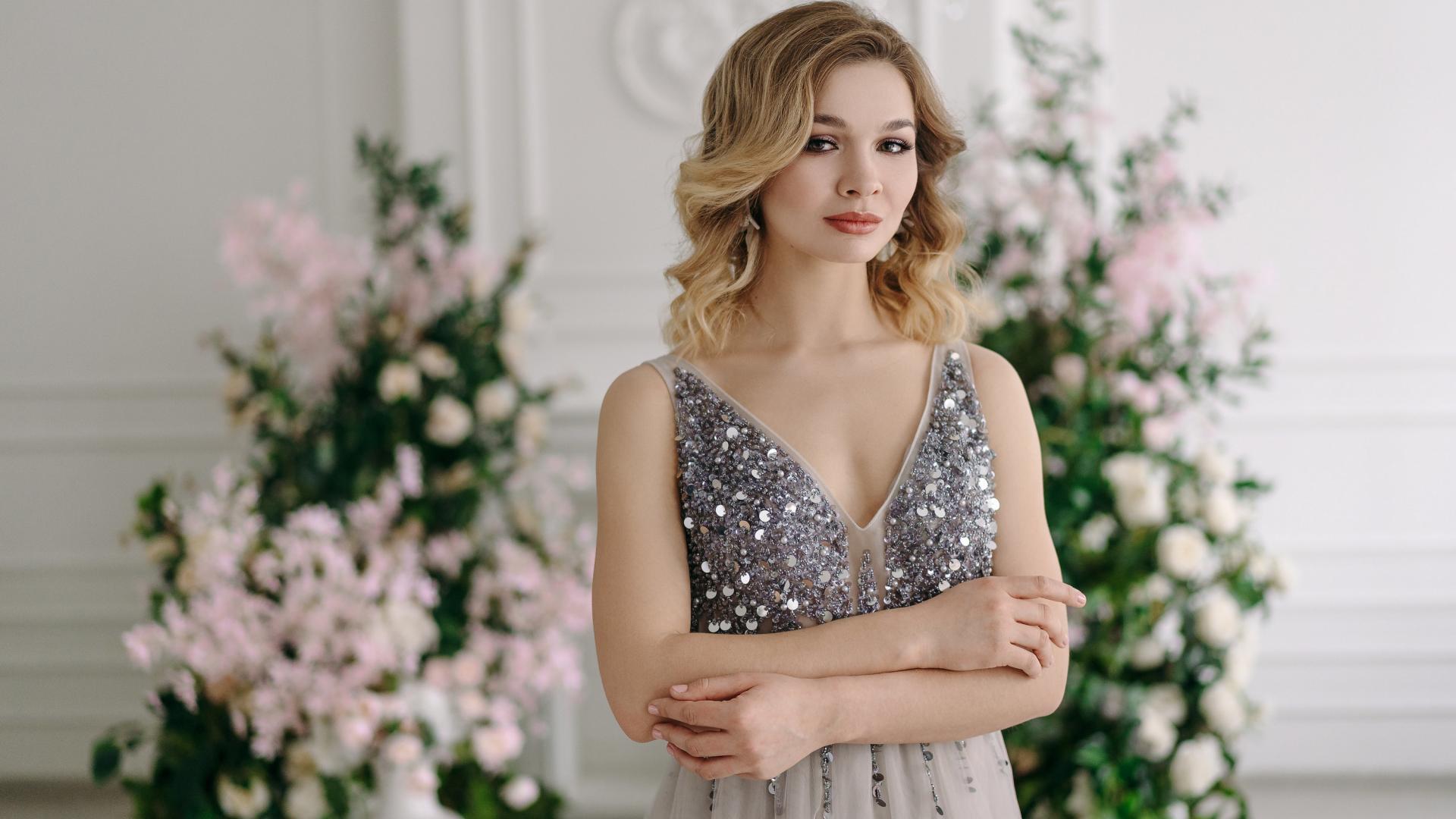 Wallpaper Girl in a beautiful dress on a background of flowers
