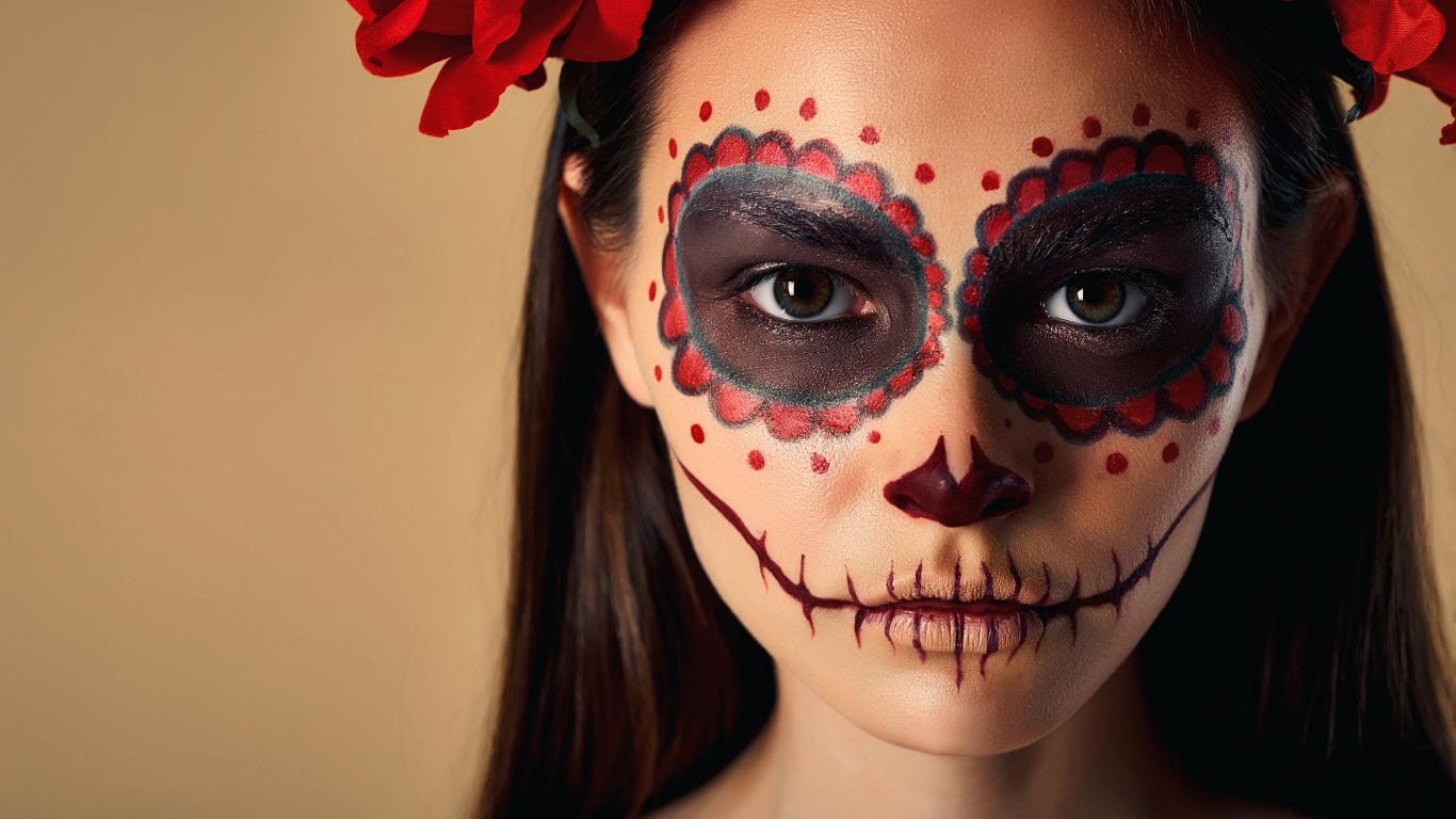 Wallpaper Girl with a make-up mask on her face